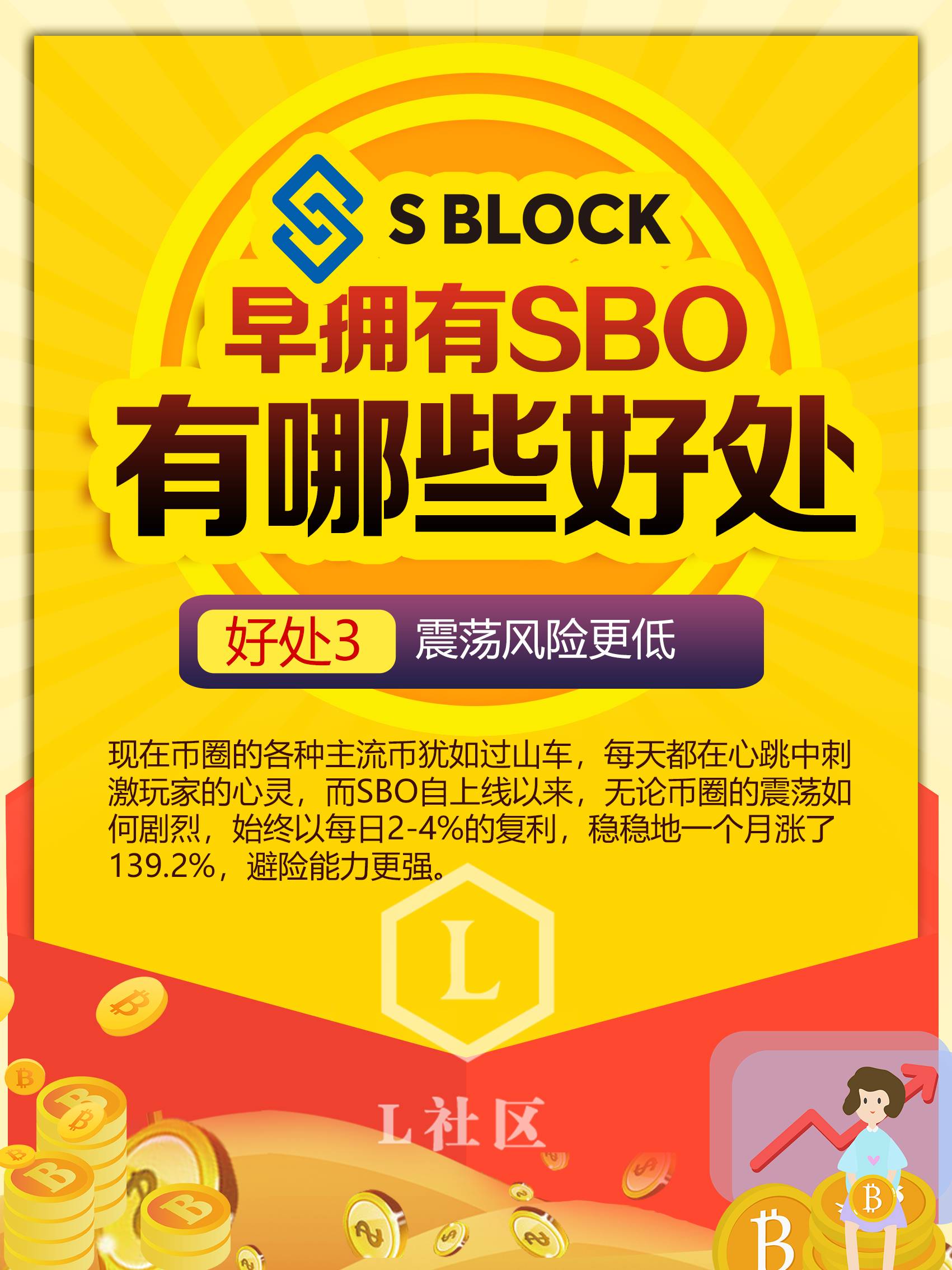 余额宝会赚钱是因为后面合作了个天弘基金,靠天弘基金帮助大家理财;而S BLOCK钱包是合作了顶级的量化交易团队,通过策略+量化机器人,在虚拟货币中进行期货杠杆和差价套利,也类似于一个基金公司那样,聚集用户资产进行理财。
