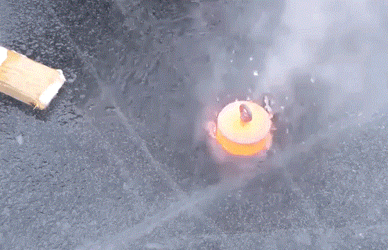 起初我们看到滚烫的铁柱快速融化了冰面,并势如破竹的向下钻入,铁柱周围的融冰甚至瞬间被烧沸。40斤烧红铁块放冰上场面太惊讶